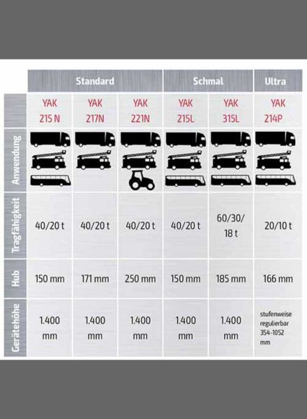 YAK Wagenheber - Kompakt-Serie Schmal: YAK 215/L, YAK 315/L
