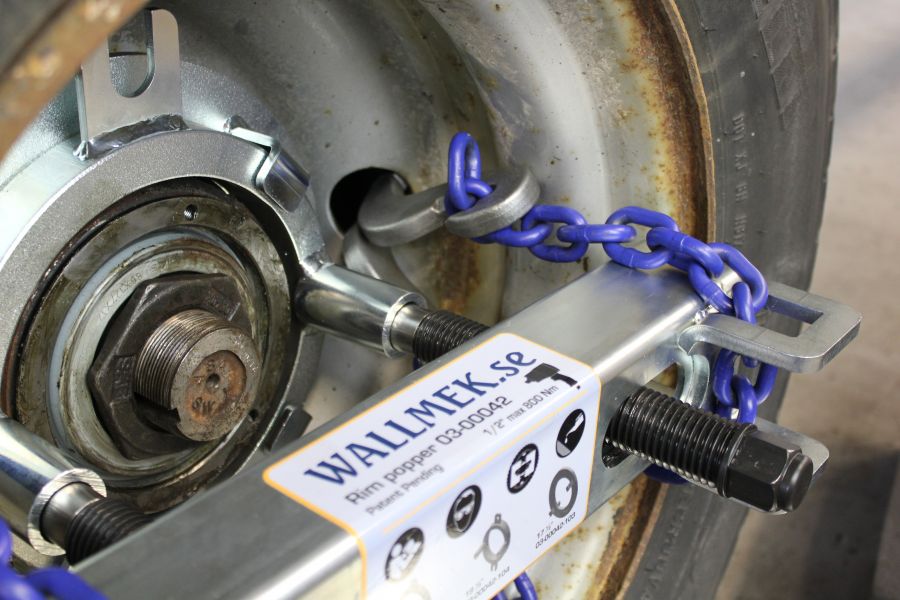 Vorbei sind die körperlich anstrengenden und gefährlichen Arbeiten mit dem Vorschlaghammer und Stemmeisen zum Abziehen der Felgen. Mit dem Wallmek Felgenabzieher-Satz erzielen Sie in kurzer Zeit eine einfache, schnelle, sichere und problemlose Demontage der Felgen in nur 4 Schritten: