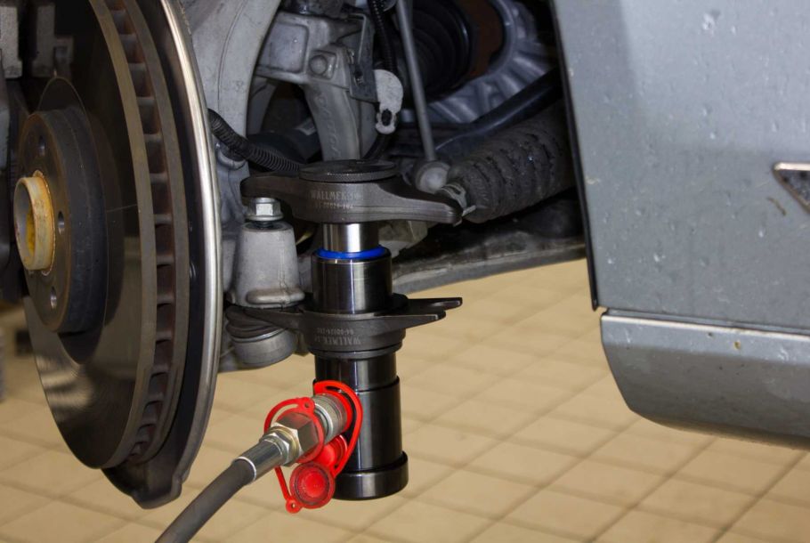 Durch das flexible Design können auch Radschrauben in kürzester Zeit demontiert und montiert werden. Das Presswerkzeug kann für unterschiedliche Bodenhöhen gedreht werden, die beiden mitgelieferten Distanzringe bieten die für diese Aufgaben die erforderlichen Einstellmöglichkeiten. Das Gegenhaltewerkzeug kann ebenfalls gedreht werden, um eine Öffnung von 42 bzw. 56 mm zu erhalten. Darüber hinaus kann die Position der beiden Werkzeuge am Zylinder gewechselt werden, um so eine besonders gute Zugänglichkeit bei engen Platzverhältnissen zu Stabilisatoren oder verdeckte Steuerungslenkungen z.B. in Bussen etc. zu erhalten.