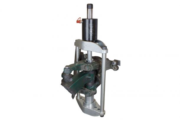Neue und einzigartige Konstruktion, mit welcher sich Kugelgelenke sowie Lenk- und Bremshebel bei Lkw, Bus und Anhänger effizient auspressen lassen.