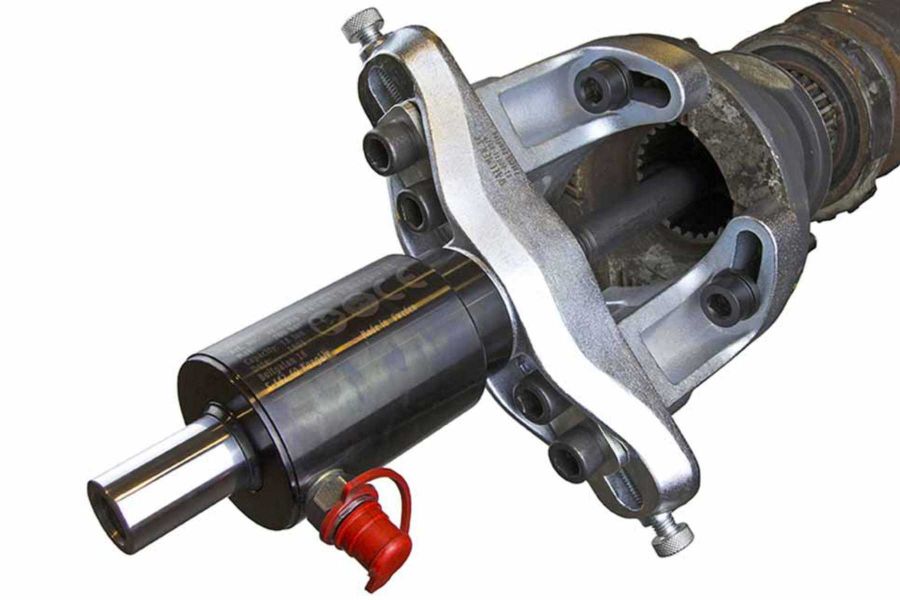 Der Abzieher wird mit einem 18 to-Hydraulikzylinder W-01-00030 eingesetzt (nicht im Satz enthalten). Alle Demontage- und Montagearbeiten werden direkt am Fahrzeug ausgeführt, ohne aufwendigen Ausbau und zeitraubende Arbeiten an einer Werkstattpresse.
