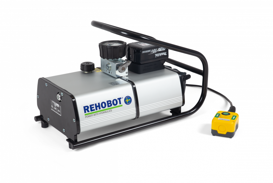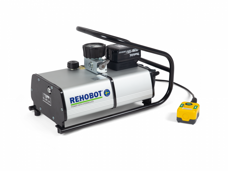 Akkubetriebene Hochdruck-Hydraulikpumpen kommen immer dann zum Einsatz, wenn die Arbeit Mobilität, Geschwindigkeit und Sicherheit erfordert. Die REHOBOT PEP70-2500MRV Akkupumpe wurde entwickelt für reibungsloses Arbeiten an abgelegenen Orten ohne Strom- oder Luftanschluss. Sie wurde speziell für intermittierende Einsätze entwickelt, also für Arbeiten, die oft unterbrochen werden, beispielsweise in Kombination mit Buchsen-Werkzeugen, Spreizer, Hydraulikpresse oder Hydraulikzylinder. Sie ist mit allen REHOBOT-Hydraulikwerkzeugen und kleinen bis mittelgroßen Zylindern kompatibel.