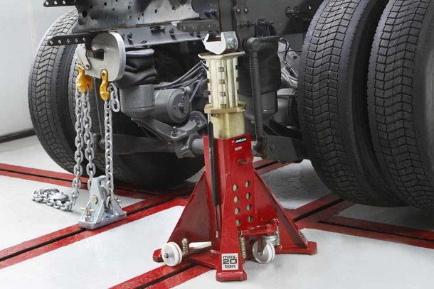 Mit den JOSAM Richtbrücken wird der Hauptteil der Richtarbeiten an einem Nutzfahrzeug durchgeführt. Dabei werden sie entweder als Press- oder als Zugbrücke eingesetzt.