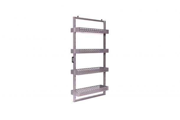 Ein Basisrahmen aus stabilen Stahlprofilen und Vierkantrohren sorgt für sicheren Stand. Lackierung mit schlagfestem, TGIC-freiem Polyesterlack in frei wählbarem RAL-Farbton. Erweiterungsmöglichkeiten durch einen sechsten Auszug und zusätzliche Lochtafeln an Seitenwänden und Rückwand.